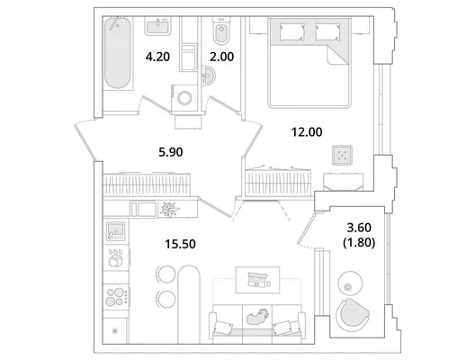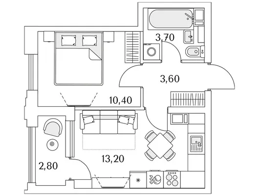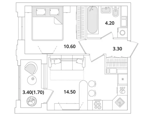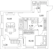 1-комн. от 34,2 до 34,4 м² от 11,44 млн до 11,62 млн ₽