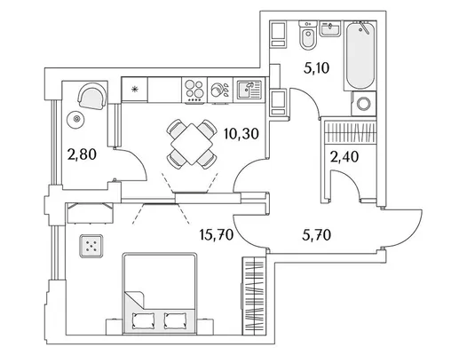 1-комн. от 41 до 41,1 м² от 10,95 млн до 11,27 млн ₽