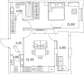 1-комн. от 48,4 до 48,8 м² от 12,89 млн до 15,62 млн ₽