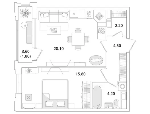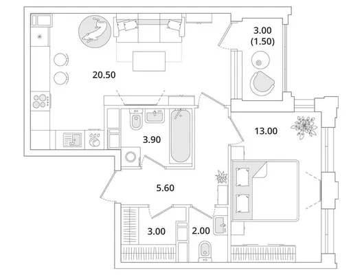 1-комн. от 49 до 49,6 м² от 13,02 млн до 15,57 млн ₽