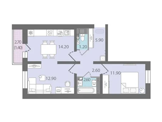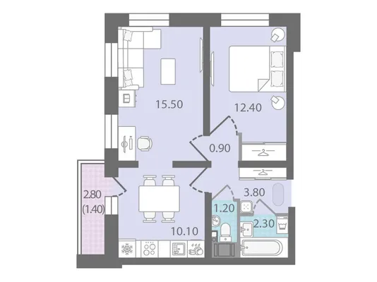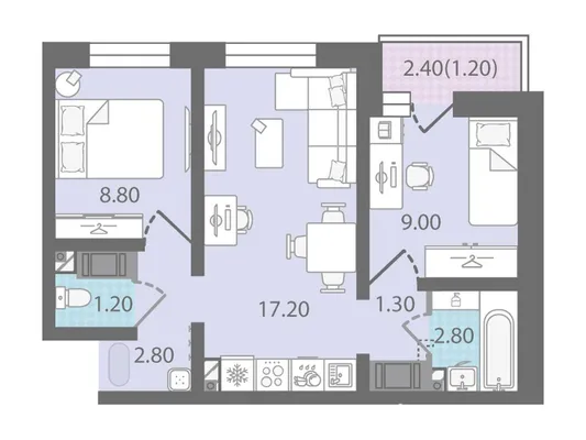 2-комн. 43,1 м²