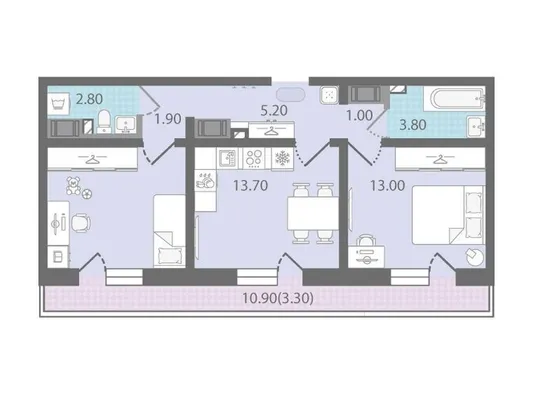 2-комн. от 58,7 до 58,9 м²