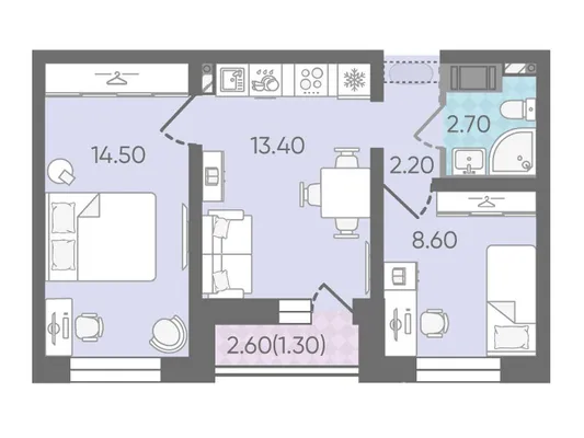 2-комн. 60 м²
