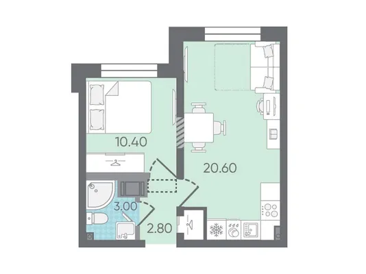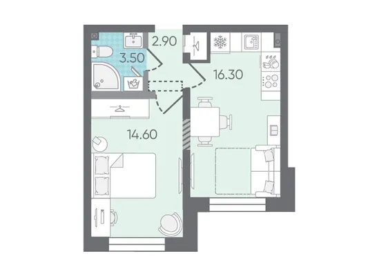 1-комн. от 29,8 до 30,1 м² от 5,75 млн до 5,86 млн ₽