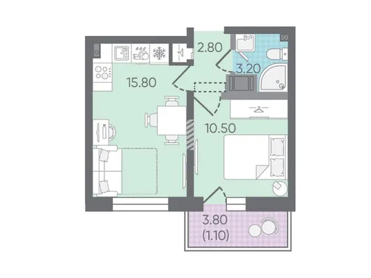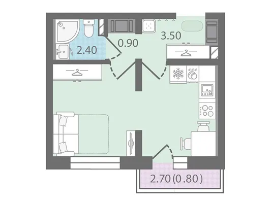 1-комн. от 26,3 до 26,8 м² от 4,98 млн до 5,20 млн ₽
