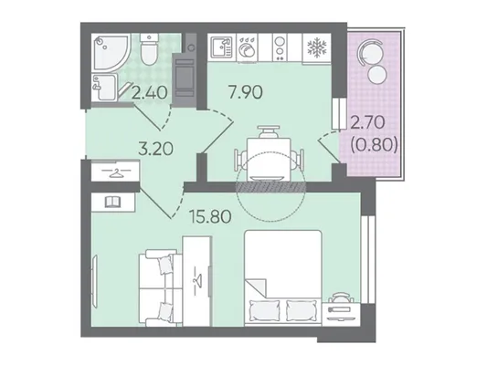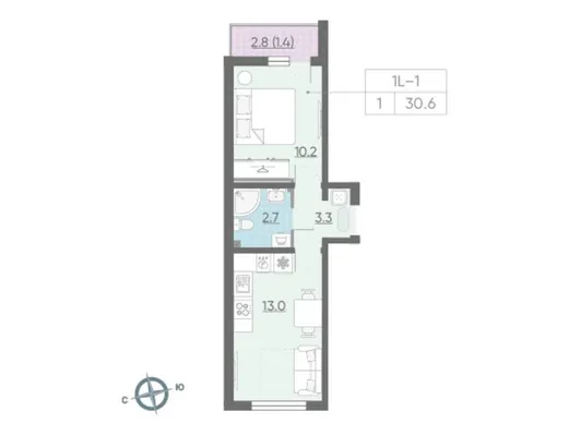 1-комн. от 30,6 до 30,7 м² от 6,77 млн до 6,79 млн ₽
