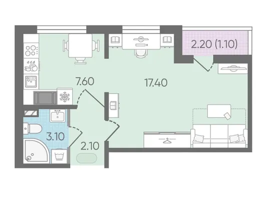 1-комн. от 33,4 до 34,1 м² от 5,94 млн до 6,10 млн ₽