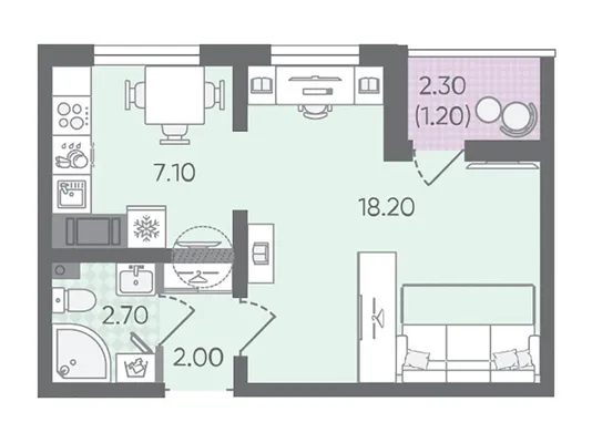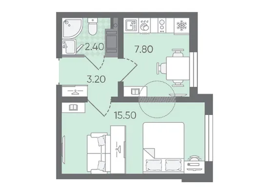 1-комн. от 31,2 до 32,4 м² от 5,36 млн до 5,57 млн ₽