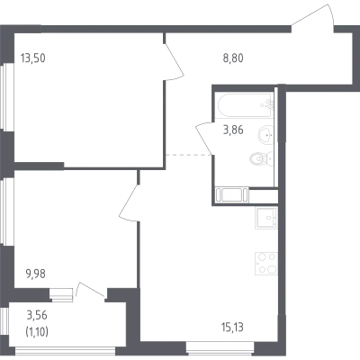 2-комн. 63,61 м² от 8,95 млн до 9,03 млн ₽