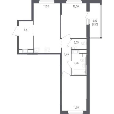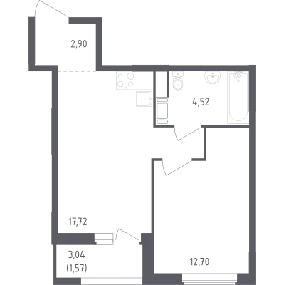 1-комн. от 39,15 до 40,51 м² от 7,26 млн до 7,52 млн ₽