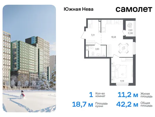 1-комн. 42,21 м² от 7,79 млн до 8,54 млн ₽