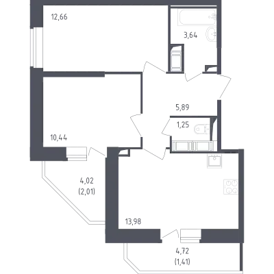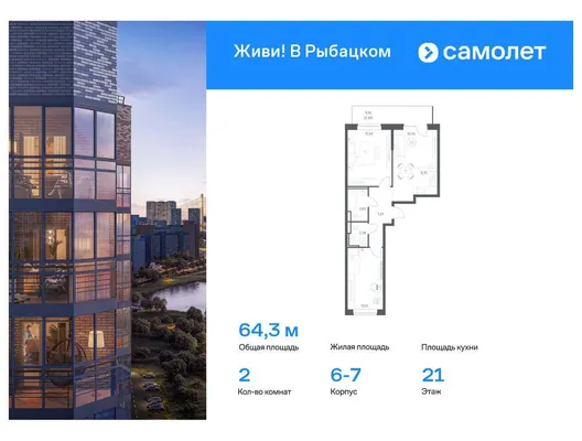 2-комн. от 63,37 до 64,68 м²