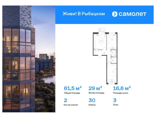 2-комн. 61,54 м²