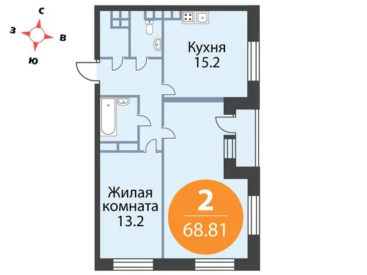 2-комн. 68,81 м²