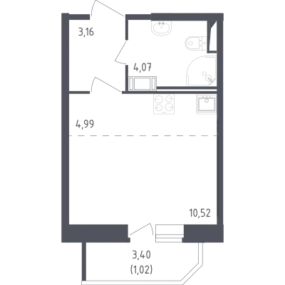 студия 21,07 м² от 4,96 млн до 8,44 млн ₽