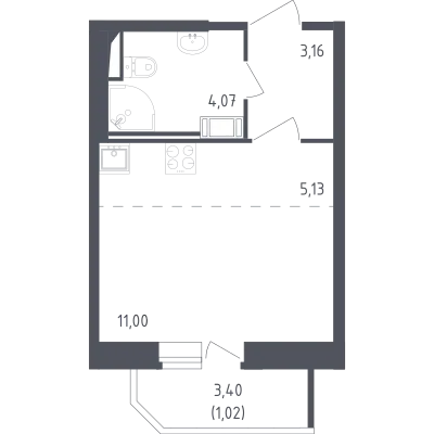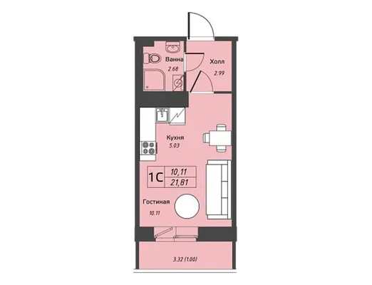 студия 21,81 м² от 7,02 млн до 7,58 млн ₽