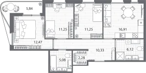 Продается просторная 3-комнатная квартира в ЖК Респект, который находится по адресу Санкт-Петербург город, Калининский, Санкт-Петербург, р-н Калининский, Пискарёвка, Полюстровский проспект, 87. Площадь лота - 78,8 м², стоимость - 29.0 млн рублей. Квартира находится на 4-этаже 13-этажного дома. Срок сдачи корпуса - II-кв. 2026 г.. Квартира отличается современной удобной планировкой - площадь кухни - 16,9 м², площадь комнат - 12,5 м², 11,3 м², 11,3 м². Звоните, чтобы узнать подробнее!