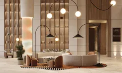 Комплекс SAAN, название которого связано с образом солнца, построен вокруг идеи света и обновления. Архитектурный облик выполнен в духе современного европейского минимализма. Фасады отличаются строгими линиями и отсутствием декоративных излишеств. Большую роль играет панорамное остекление и функциональность пространств. Входная группа оформлена в виде дизайнерского лобби с высокими потолками. Интерьер разработан студией AA Partners. В оформлении используют натуральные материалы и спокойные цветовые решения. Высота потолков в лобби достигает 7 метров. Свет и отражающие поверхности подчеркивают выразительность интерьеров. Продуманное освещение и мягкие формы конструкций создают сбалансированное пространство, где природные мотивы сочетаются с урбанистическими элементами.