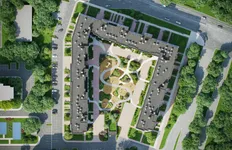 На придомовой территории площадью 4,2 га застройщик выполнил комплексное озеленение и благоустройство. Во «дворе без машин» есть спортивные площадки, зоны для детских игр, пространства для отдыха и прогулок. За пределами двора предусмотрены открытые парковочные места для гостевых автомобилей.