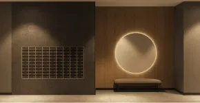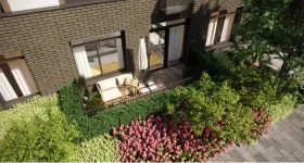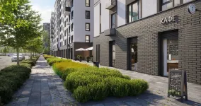Интерьеры холлов выполнены в едином стиле, согласованно с фасадными решениями: здесь новоселам будут доступны зоны ожидания и отдыха с мебелью, декоративными зеркалами с подсветкой, живыми растениями, арт-объектами и почтовыми ящиками. Подъезды комплекса будут оформлены прозрачными дверями, расположенными вровень с поверхностью земли. Домофоны разместят в теплых тамбурах, защищённых от осадков. Часть входных групп станет проходной — они соединят улицу с благоустроенным внутренним двором. В комплексе также предусмотрены помещения для хранения колясок, велосипедов и самокатов. На подземном уровне предусмотрены кладовые площадью 2–6 кв.м для хранения сезонных вещей. Жилые этажи связаны с подземным уровнем скоростными бесшумными лифтами. На первых этажах разместятся кафе, пекарни, магазины, салоны красоты и другие полезные сервисы.