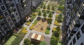 Для активного отдыха во дворе предусмотрены спортивные зоны: футбольное и баскетбольное поля, тренажёры, столы для настольного тенниса. Отдельная зона выделена под воркаут, дополнена лужайкой для занятий йогой и гриль-площадкой. Семейный отдых организуют на площадке с волейбольным полем, детскими игровыми комплексами и уютными зонами под перголами. Маршруты для прогулок и велодорожки будут проходить вдоль живописных яблоневых аллей. Дополнительные пространства для досуга включат творческие открытые студии и отдельную площадку для занятий с собаками. Автомобилистам будет доступен плоскостной паркинг, вынесенный за пределы дворов.