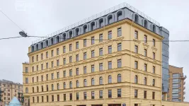 Проект создан в архитектурной студии Евгения Подгорного «Интерколумниум». «Дом у ратуши» – это реконструкция доходного дома 1905 г. постройки. Старый особняк был снесен, его облик воссоздан в новом 7-этажном здании. Об архитектуре рубежа 19 и 20 веков напоминают оштукатуренные в мягких бежевых оттенках фасады с элементами рустики и лепниной, эркерами и узкими декоративными балкончиками. Расположенные в форме буквы «П» секции образуют закрытый внутренний двор, а скошенные и закругленные торцевые стороны боковых крыльев дома формируют оригинальные планировки квартир с просторными террасами.