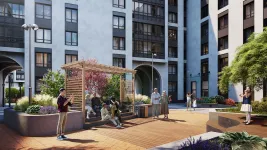 Придомовое пространство организуют по концепции «двор без машин». Территорию озеленят хвойными деревьями, кустарниками и декоративными злаками, обустроят газоны. Предусмотрены игровые площадки для детей разных возрастов, спортивные зоны и пространства для спокойного отдыха.