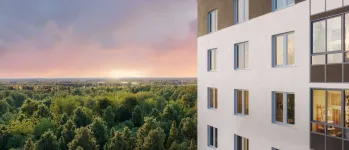 Архитектурная концепция новостройки ориентирована на современные европейские подходы в домостроении, где доминируют аккуратная геометрия, выраженная композиционная стройность и сдержанный декор. Фасады «Клюква. Парк» выполнены в сбалансированной контрастной палитре: белые, серые и светло-коричневые поверхности сочетаются с вертикальными линиями витражного остекления лоджий. Выбраны выразительные цветовые решения — плавные градиентные переходы и контрастные акценты, придающие фасадам динамику. Особое внимание уделено композиции: панорамное остекление лоджий, чёткая вертикально-горизонтальная структура, грамотное выделение функциональных зон. П-образная форма здания формирует защищённый внутренний двор, где создаётся ощущение приватности и защищённости от внешнего шума.