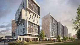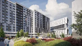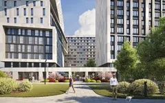 жилой части предусмотрено 346 квартир и 546 апартаментов. Один из корпусов