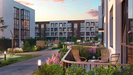 На территории комплекса создадут закрытые охраняемые дворы без автомобилей. Между первыми корпусами обустроят прогулочный променад с беседками и дорожками. Вдоль маршрутов и в зонах отдыха появится мягкая вечерняя подсветка. Ландшафт дополнят искусственные холмы, подчеркивающие концепцию проекта. Для детей оборудуют игровые площадки из натуральных материалов. Для взрослых предусмотрены цветущий сад для встреч, тенистые уголки с лежаками, уединенные беседки и другие зоны отдыха. Любители активного образа жизни смогут пользоваться спортивными площадками. На всей территории жилого комплекса будет доступен Wi-Fi.