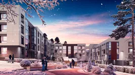 Жилой комплекс выполнен в формате камерной малоэтажной застройки. Архитектурная концепция основана на принципах скандинавского минимализма. Небольшая этажность и панорамное остекление позволяют домам органично вписаться в природное окружение и сохранить ощущение открытого пространства. Фасады будут оформлены в спокойной цветовой гамме с акцентом на лаконичность и натуральные оттенки. Крупные окна и открытые террасы придают зданиям визуальную легкость.