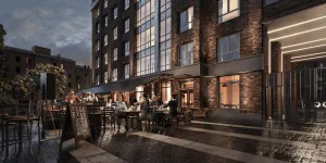 Два закрытых двора формируют приватное пространство для отдыха. Ландшафт вдохновлён травяными садами «Новой Голландии» и парка «Зарядье». Предусмотрена система автополива. Во внутреннем дворе разместят детскую площадку и workout-зону, а также «зелёный коридор» для отдыха и чтения. В центре установят рождественскую ель. Внешний двор оформят как лаунж-пространство. В вечернее время территории подсветят декоративными светильниками. Двор закроют для проезда машин, а для гостевых авто запланирован стоянка на 17 машино-мест.