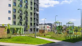 Придомовая территория благоустраивается и озеленяется. Во дворах появятся детские и спортивные площадки, зоны отдыха, прогулочные и велосипедные дорожки. Дворы освобождены от машин, парковочные зоны вынесены отдельно.