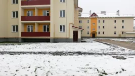 Свободных планировок в формате «студия» нет. Санузлы в основном совмещенные, есть небольшие по площади балконы (2-3 кв. м). Кухни 8-9 квадратных метров, жилая комната от 14 квадратных метров. Дом по проекту однокорпусный, в три этажа высотой. Каркас стен блочный, из газобетона. Крыша покрывается металлочерепицей.